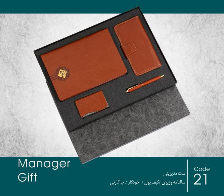 محصولات ست : سالنامه وزیری ، کیف پول ، خودکار ، جاکارتی